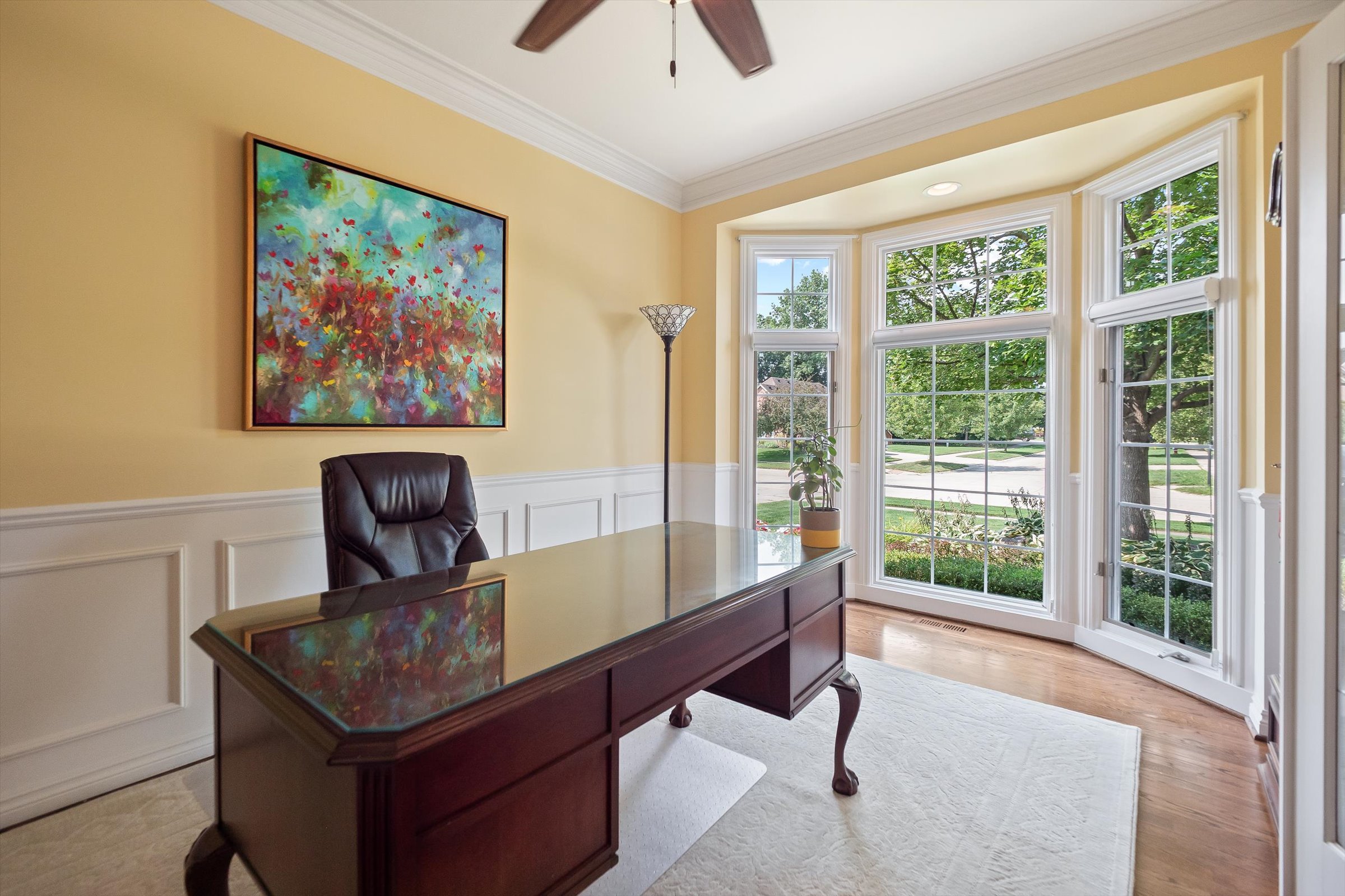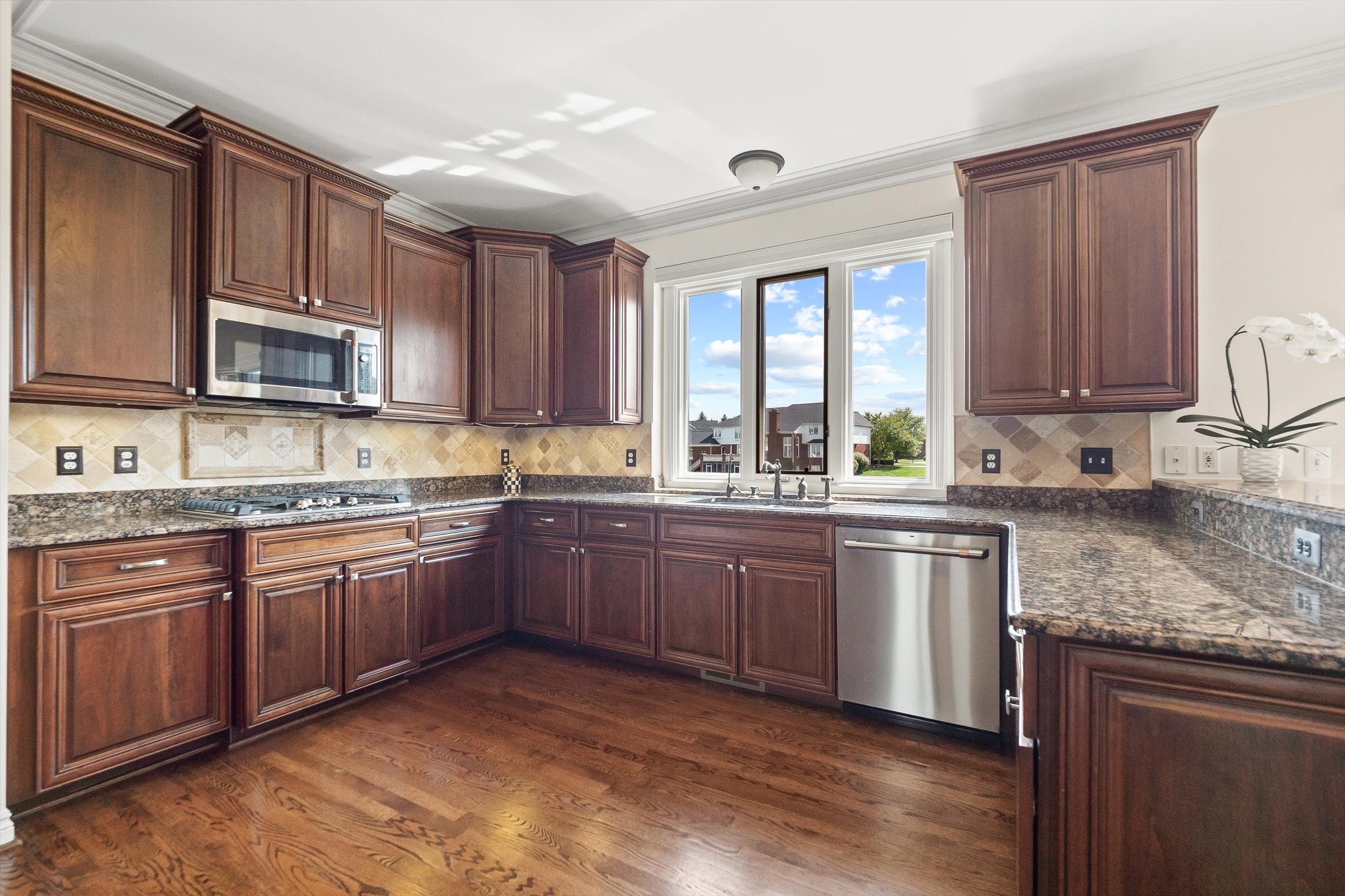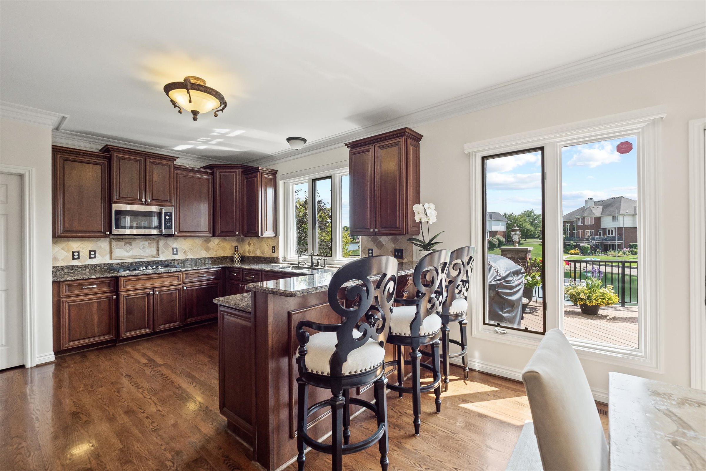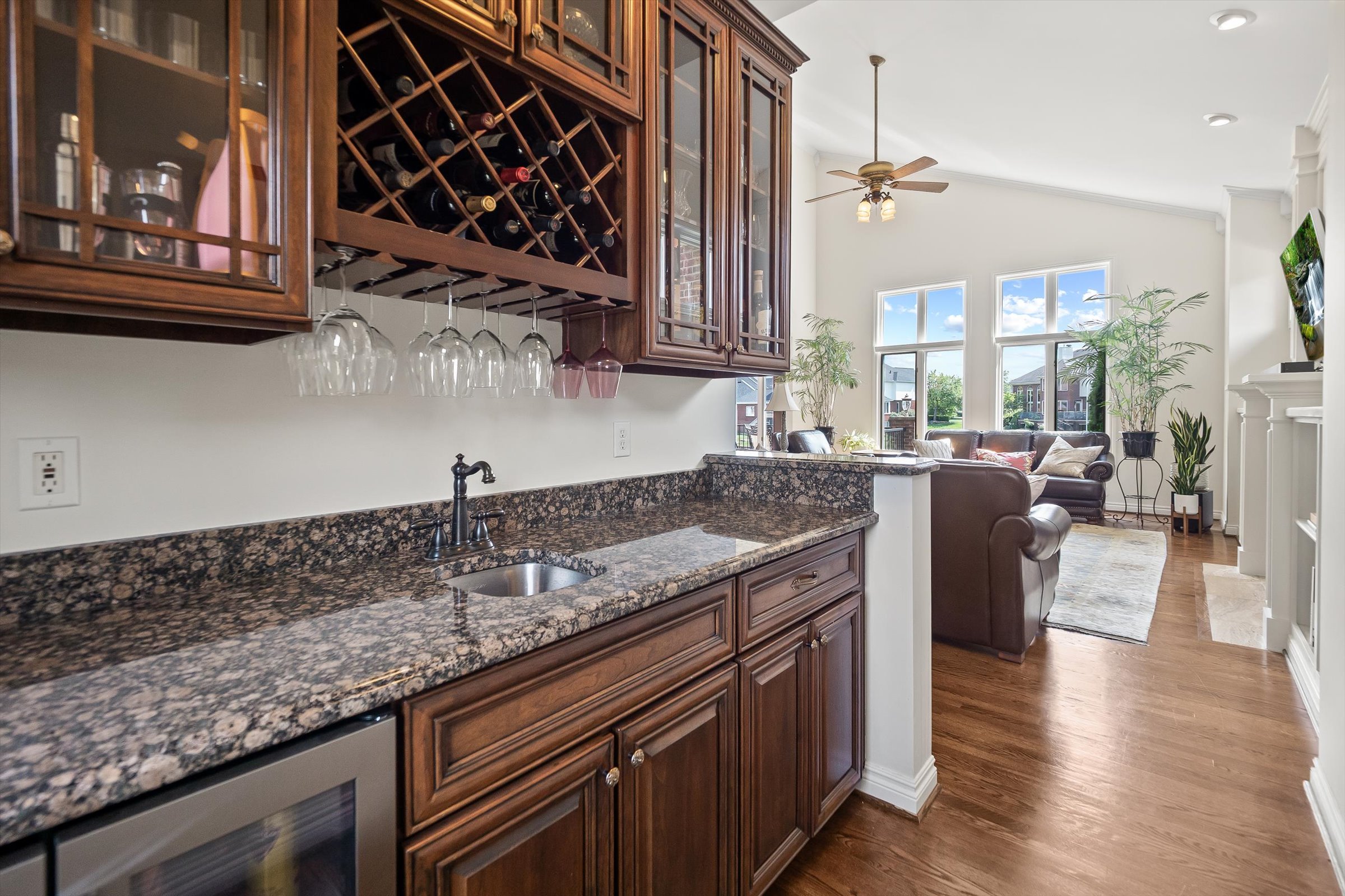 Designed for both everyday comfort and effortless entertaining, the chef’s kitchen features granite countertops, a spacious walk-in pantry, and a stylish butler’s bar that seamlessly connects the dining room and breakfast nook. Just off the great room, a functional wet bar with beverage fridge adds the perfect touch for hosting gatherings.