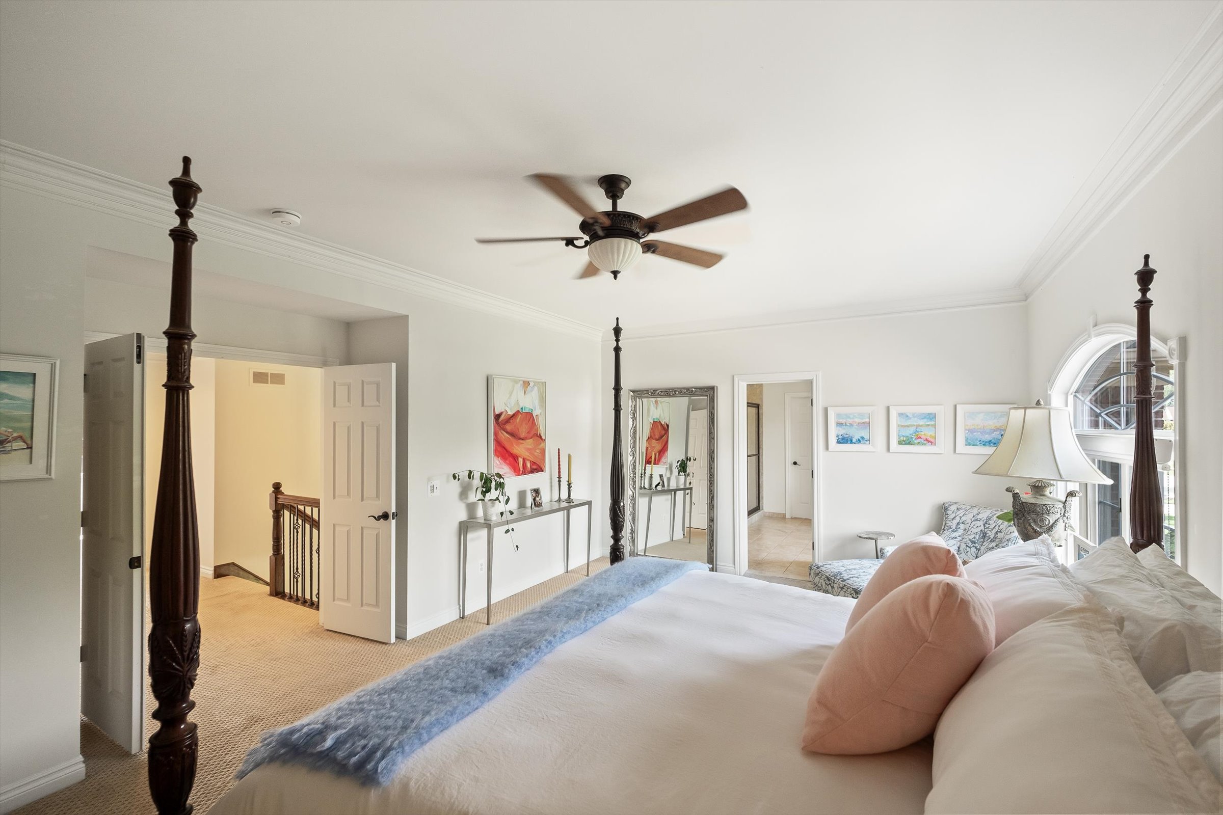 Upstairs, four bedrooms include walk-in closets and ensuites, providing comfort and privacy for family and guests alike. The luxurious primary suite offers serene pond views, a spa-inspired bath with soaking tub and separate shower, and an expansive walk-in closet.