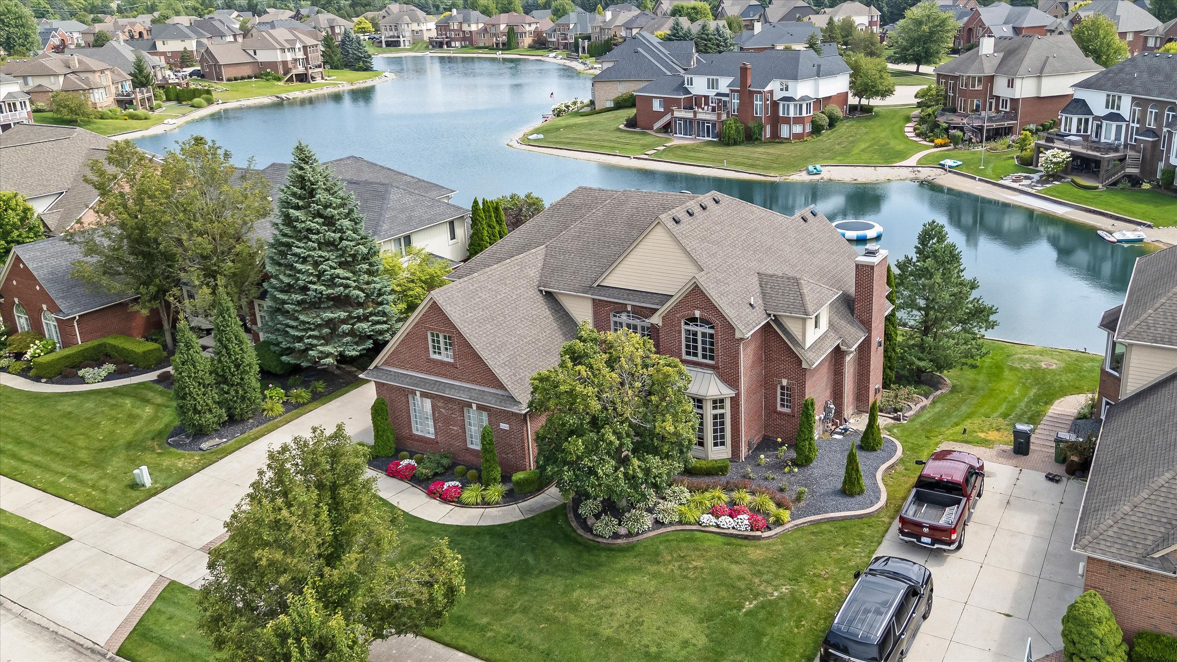 Welcome to this exceptional pond-front colonial in the highly sought-after Shelby Township community of Diegel Farms, offering breathtaking water views from nearly every window. Located within the award-winning Utica Community Schools, this 5-bedroom, 4.5-bath residence delivers over 3,600 square feet of refined living space plus an additional 1,500+ square feet of beautifully finished walkout lower level.